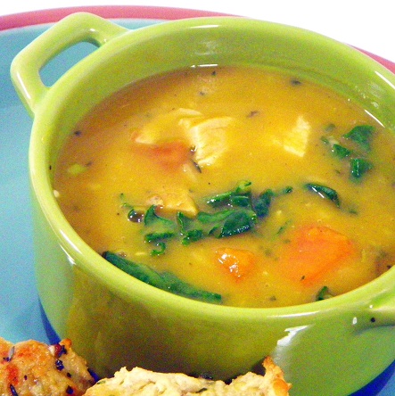 (The picture below is from the internet but it kind of looked like mine, only I had more kale.) Oh my. I didn't know I would be making it until around 5 o'clock last night when I went out to the kitchen to begin dinner preparations. All I knew was that whatever I came up with, it had to include the leftover chicken meat from our Roasted (Milk-Bath) Chicken that I made for Christmas dinner. (That is a whole 'nuther blog and just FYI, it came out great) So back to the chicken soup. I'm sure every last one of you readers has your own recipe for this dish. I mean, unless you are vegan or something and don't eat chicken. However, most of my soup wasn't chicken and I really am not sure it wouldn't be just as good without the chicken in it, if needs must. But we DO eat meat and we do love chicken. I will call this my Sandra Lee Semi-Homemade Creamy Chicken with Kale Soup recipe. Because I used two cans of something and the rest was all my own. Creamy Chicken with Kale Soup 1 can Progresso Traditional Home-Style Chicken soup, (19 oz. size) 1 can generic (store brand) Chicken with Rice condensed soup (10.5 oz) I put those two cans of soup into my pot (which is new! Santa Paul gave it to me for Xmas and I love it). To this I added: 1 cup buttermilk + 1/2 cup 1% milk (plain milk would be fine) 1 cup cut up cooked chicken white meat 1 cup frozen peas 2 cups chopped up fresh kale Heat that all up til simmering and turn way down on low. To that I added some: Madras and regular curry powder, some of each Black pepper Turmeric powder Fox Point herb mixture from Penzey's I'm guessing but that was about a good tablespoon of the above, except a little less pepper. The turmeric made the soup turn a brilliant yellow/orange color, which is what I wanted. It's more of a creamed soup really, with the buttermilk/milk added, but it was a great color with the turmeric and curry powder. About 10 minutes before I served it, I added the 2 cups of chopped kale. Just so that would cook slightly but not overly so. The two cans of soup I used had other stuff in them like tiny carrots, some rice, some little pearls of pasta things, so that gave it quite a lot of bulk, too. I really, really, REALLY wish I'd taken a photograph. Next time I make this, I promise to do that. It was so beautiful. But the best part was that it was TO-DIE-FOR-yumilicious. Wow. Paul loved it and so did I. I know the canned soups contain sodium etc., and you can get the same things that are either low- or no-salt I think, but these were what I had in my pantry. And I added no other salt at all and the soup was not salty tasting at all. We each had a nice size bowl of this soup for supper last night with nothing else and wow, it filled us both up to the brim. I would have liked some homemade cornbread, but we didn't need it, honestly. Oh, and I have a great recipe for cornbread that I made up the other night when I made homemade chili, but that was all gone before yesterday. I will post those two recipes at another time because they both exceeded my expectations. As it's the last week of the year, and New Year's resolution time is fast approaching, I will be making one, as I always do, but hopefully this time I'll follow through on it, unlike past years... So, cheers for the end of The Holidays! ![]() Bex & Co. Find your heart, open up both your eyes. We can all know every thing without ever knowing why. It's in every one of us, by and bye. ~ ~ ~ ~ ~ ~ ~ ~ 2003 - Present Archives at Diaryland Read/Post Comments (3) Previous Entry :: Next Entry Back to Top |